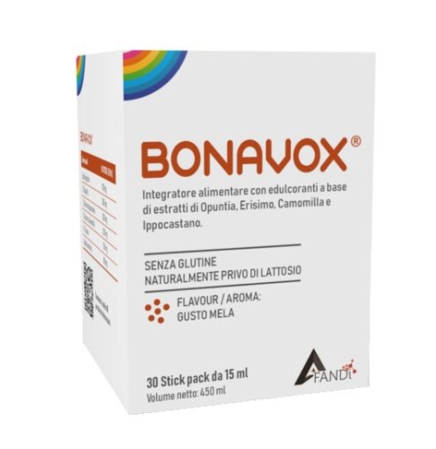 Bonavox è un integratore alimentare a base di estratti di opuntia, erisimo, camomilla e ippocastano, con acido ialuronico e sodio alginato. La camomilla e l’opuntia svolgono un’azione emolliente e lenitiva sul sistema digerente.