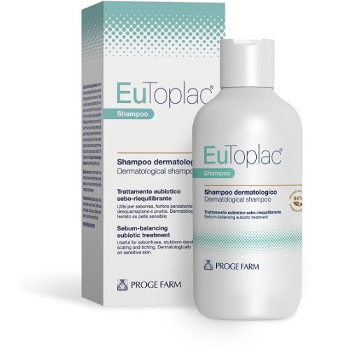 Shampoo dermatologico formulato con tensioattivi di origine naturale particolarmente delicati ed ideali per pelli sensibili. Aiuta a purificare il cuoio capelluto riequilibrando il micobioma-batterioma (piroctone olamina, Pure-Phen), a normalizzare la desquamazione (vitamina PP e aminoacidi solforati), a lenire prurito e rossore (aloe fermentata) e a favorire una buona idratazione (urea). Contiene inoltre sostanze prebiotiche che favoriscono il recupero delle condizioni normali del cuoio capelluto. Gli ingredienti contenuti in Eutoplac Shampoo dermatologico donano ai capelli morbidezza e setosità.