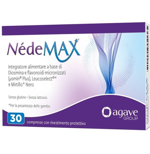 Integratore alimentare a base di diosmina e flavonoidi micronizzati, Leucoselect (proantocianidine) e mirtillo nero. Nédemax è indicato in tutti i casi di insufficiente apporto nella dieta o aumentato fabbisogno di tali nutrienti. La Vitis vinifera (da cui sono estratte le proantocianidine) e il mirtillo nero sono utili alla funzionalità del microcircolo, in caso di pesantezza delle gambe, e possiedono proprietà antiossidanti.