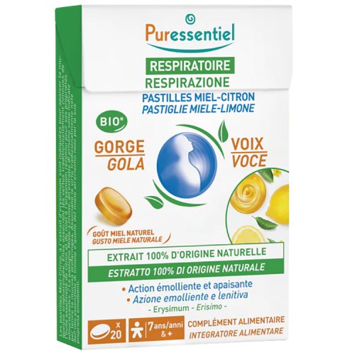 Pastiglie miele-limone all' estratto di Erisimo, indicate per lenire la mucosa orofaringea.