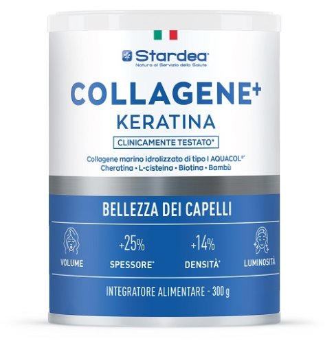 DescrizioneIntegratore alimentare a base di collagene marino idrolizzato di tipo I, cheratina, L-cisteina, biotina, con estratti di bambù (Bambusa arundinacea), rucola (Eruca sativa) e mirtillo nero (Vaccinium myrtillus), con selenio, rame e zinco. Il selenio e la vitamina B6 contribuiscono al mantenimento di unghie e capelli. Il rame contribuisce alla formazione del tessuto connettivo e mantiene la normale pigmentazione di pelle e capelli. Lo zinco contribuisce alla normale sintesi proteica, favorendo la normale formazione di pelle, unghie e capelli. Inoltre, il rame e lo zinco insieme al mirtillo nero contribuiscono alla protezione delle cellule dallo stress ossidativo. AQUACOL* è costituito da peptidi di collagene con bioattività comprovata da studi clinici.
