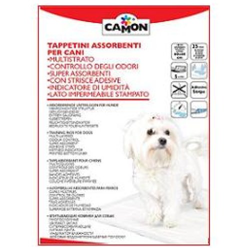 Il tappetino ha un sistema assorbente multistrato con un'anima di gel, che garantisce il massimo contenimento dei liquidi e degli odori. L'indicatore di umidità segnala quando il tappetino deve essere cambiato: la stampa del fondo impermeabile compare sul lato superiore. La superficie superiore goffrata si asciuga molto rapidamente, mentre la superficie inferiore stampata è impermeabile per proteggere pavimenti, tappeti, ecc. Il tappetino è dotato di adesivi per aderire al pavimento e alle superfici da proteggere. Indicato per i cani che vivono in appartamento, per educare i cuccioli a sporcare nello spazio designato, per i cani malati, incontinenti; e ancora in viaggio, in albergo, in barca, nel trasportino.