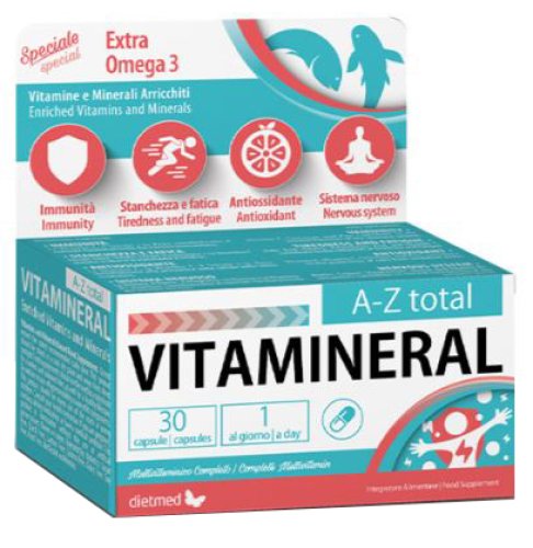 Olio di pesce omega 3 (12% DHA - acido docosaesanoico - e 18% EPA - acido eicosapentaenoico); capsula: gelatina; acido L-ascorbico (vitamina C); agente di carica: cellulosa microcristallina; solfato ferroso, acetato di DL-alfa-tocoferile (vitamina E), nicotinamide (vitamina B3), ossido di zinco; agente antiagglomerante; sali di magnesio degli acidi grassi; gluconato di rame, acetato di retinile (vitamina A), D-pantotenato calcio, (vitamina B5), solfato di manganese, cianocobalamina (vitamina B12), luteina, colecalciferolo (vitamina D); agente antiagglomerante: biossido di silicio; cloridrato di piridossina (vitamina B6), cloridrato di tiamina (vitamina B1), acido pteroil-monoglutammico (vitamina B9), cloruro di cromo, ioduro di potassio, selenito di sodio, molibdato di ammonio, fillochinone (vitamina K), D-biotina (vitamina B8).