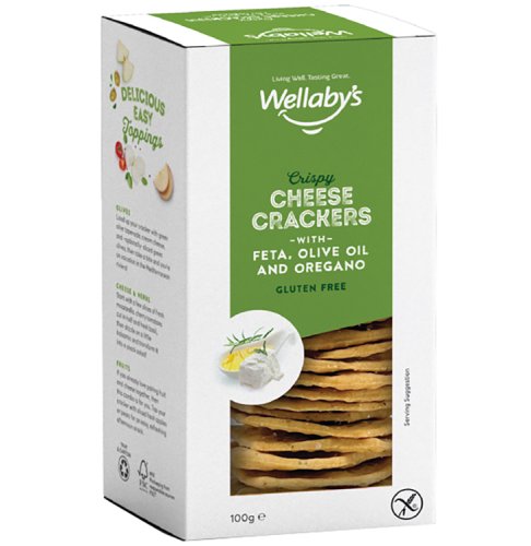 Crackers al gusto feta, origano e olio di oliva cotti al forno e non tostati. Adatto ai vegetariani.