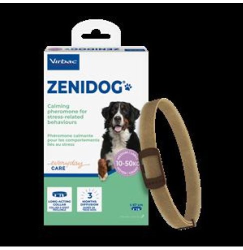 Il collare Zenidog contiene gli analoghi dei feromoni appaganti del cane (DAP), rilasciati dalle madri durante l'allattamento.